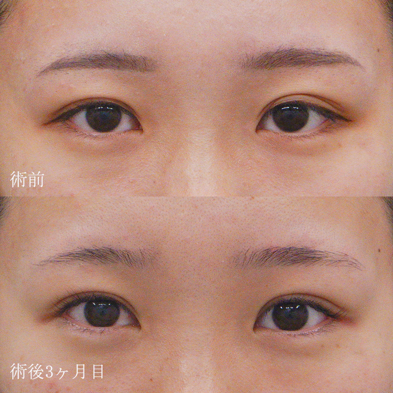 目頭側から目尻まで均一なラインが入っている欧米の方に多く見られる二重です。まつ毛の生え際もしっかり見えており、華やかな印象のお目元になります。