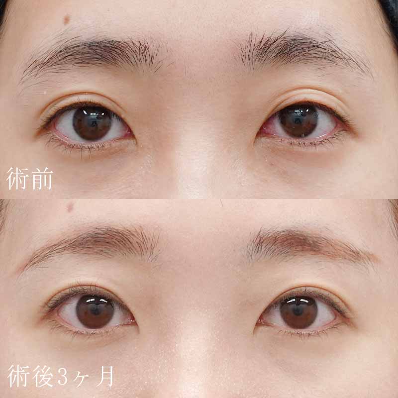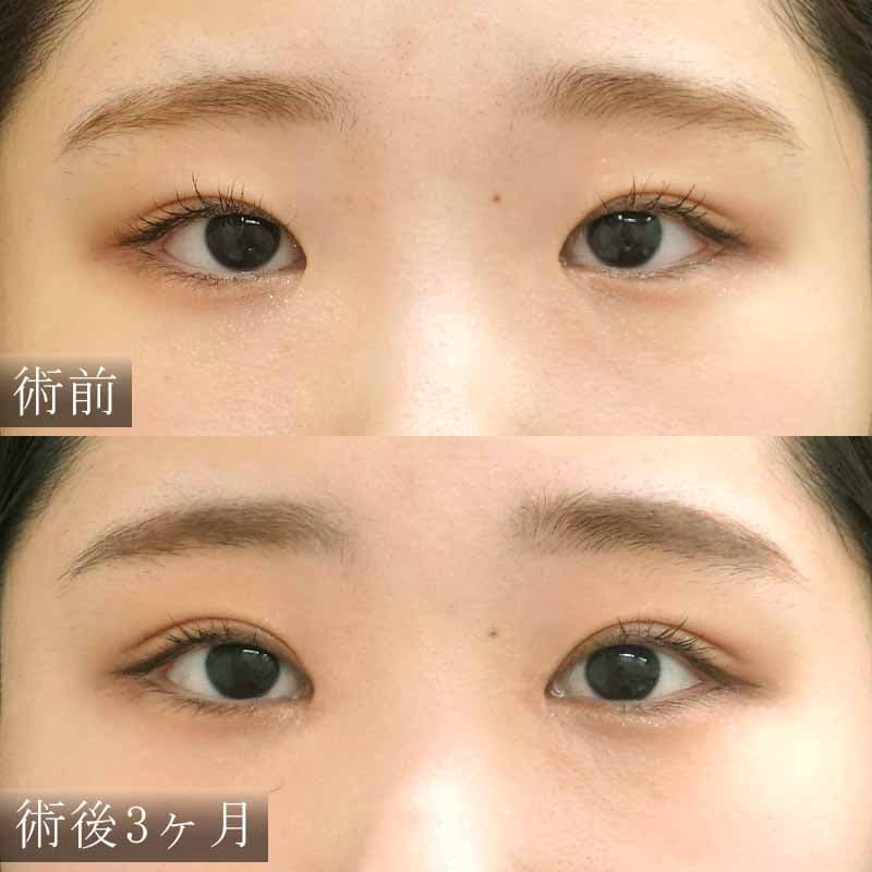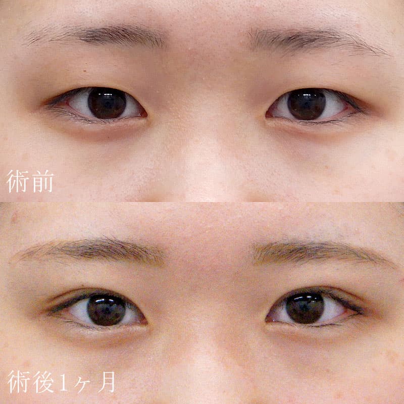 幅の広い平行二重よりもさりげなく華やかな印象を与え、ノーメイクでも違和感の無い二重です。